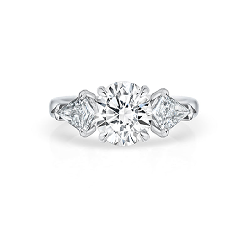 Create your own ⟶Round brilliant and kite cut Diamond three stone ring