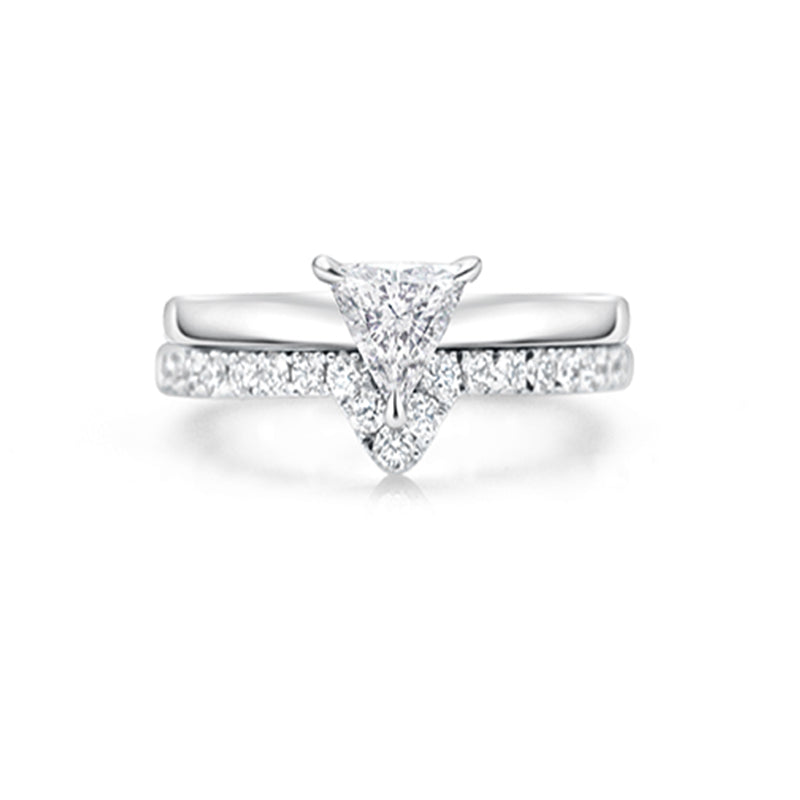 This contemporary trillion cut solitaire with matching diamond set wedding band is the perfect combination, made even more special by the fact that it was for a good friend of ours.